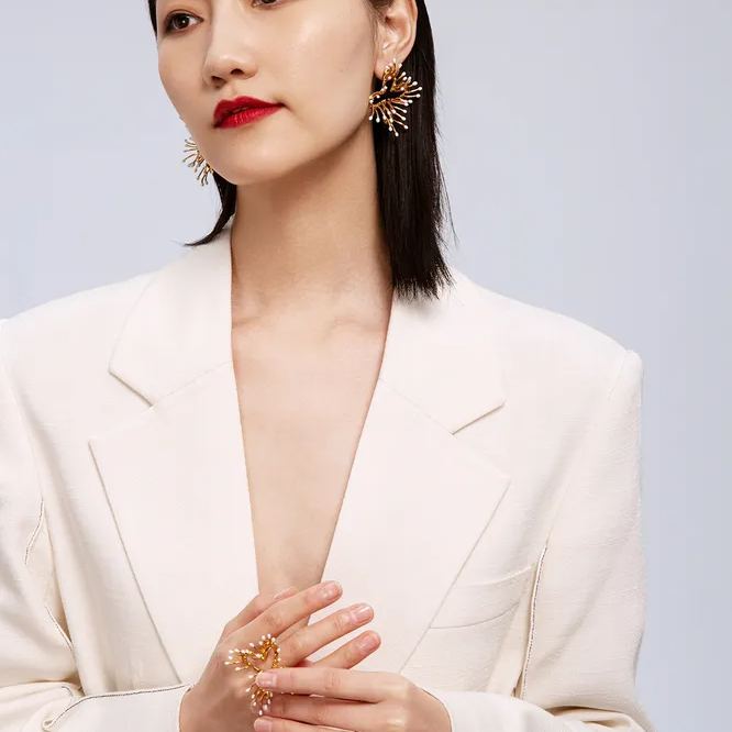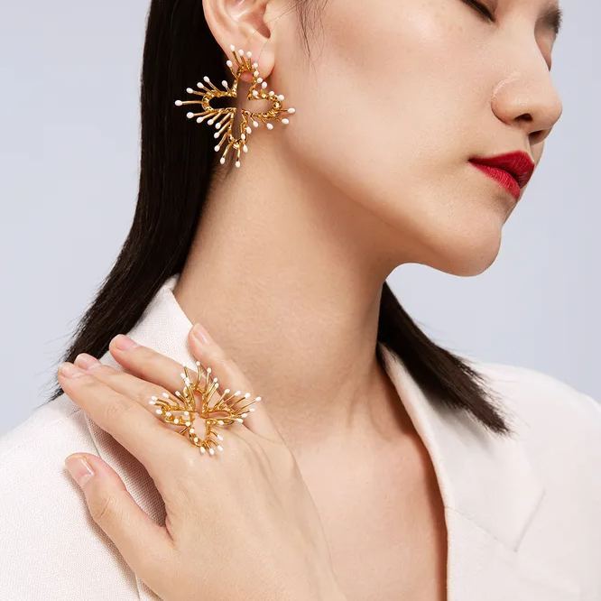 Stamens Collection Four Stamens Ring With White Enamel