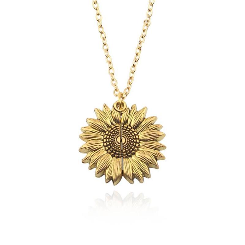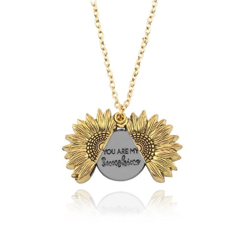 Sunflower Necklace, Double Layer Lettering Vintage Gold and Silver - You are my Sunshine