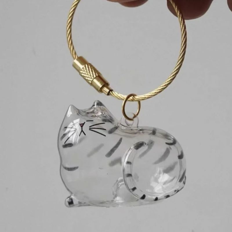 Transparent Cat Fur Capsule Keychain – Acrylic Gashapon Memory Holder Charm