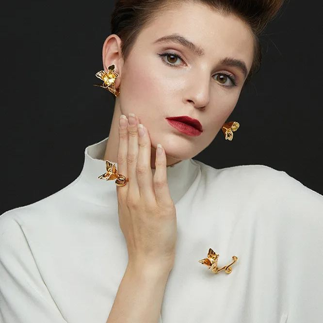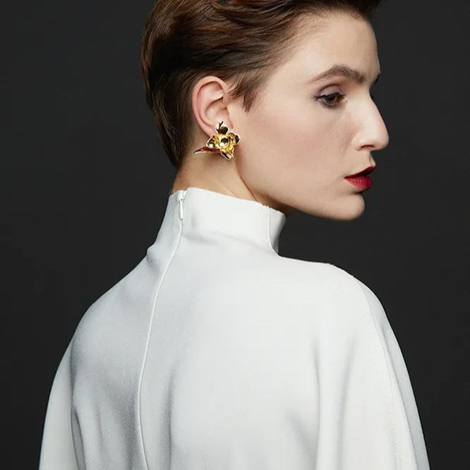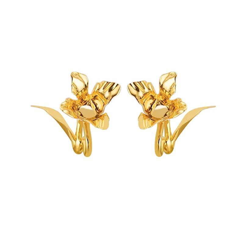 Tulip Collection Flower Ear Hook With White Enamel