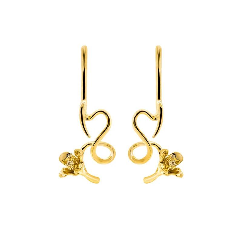 Tulip Collection Single Flower Earrings With White Corundum
