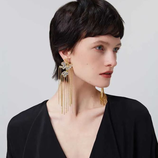 Wisteria Collection Asymmetric Golden And Silver Tassel Earrings
